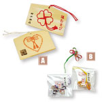 サンモ-ル一番町商店街の婦人部が野中神社のグッズとして考案し、心をこめてひとつひとつ丁寧に手作りした絵馬と縁結びストラップを各5名様にプレゼント。